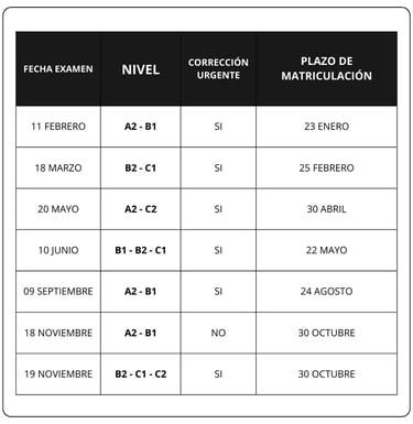 Clases prácticas · Simulacros reales · A2, B1, B2 y C1 · Modalidad híbrida