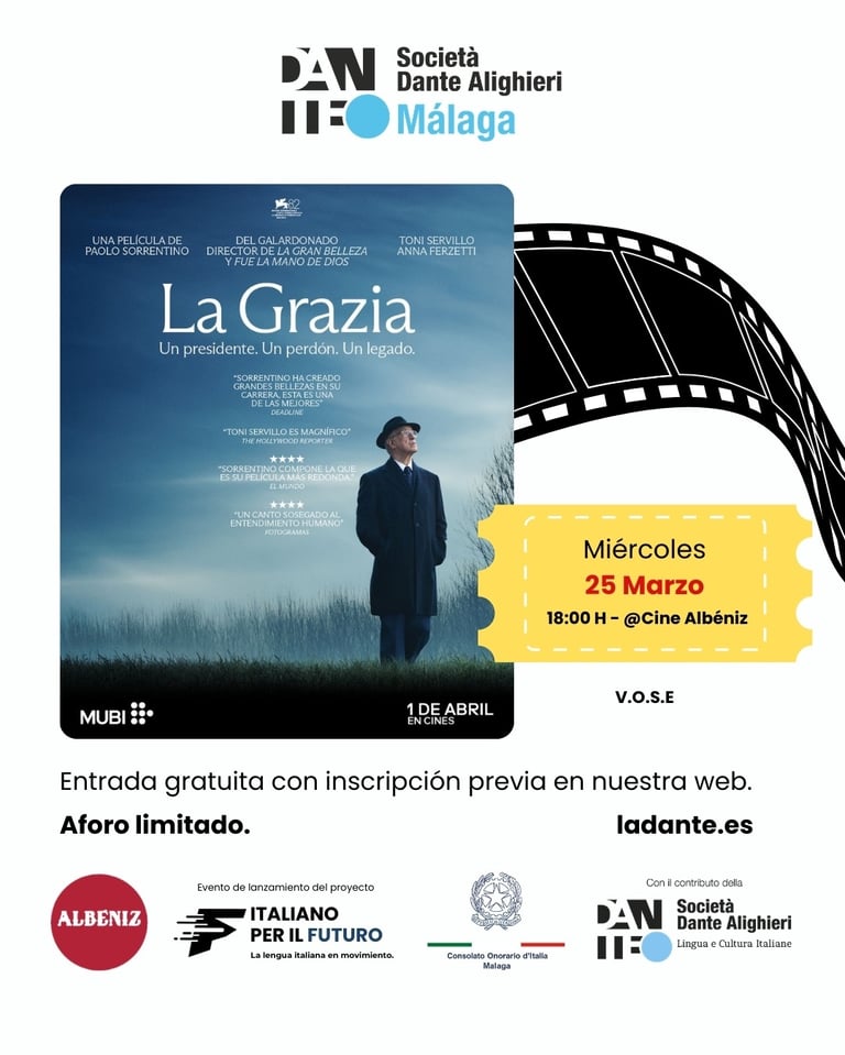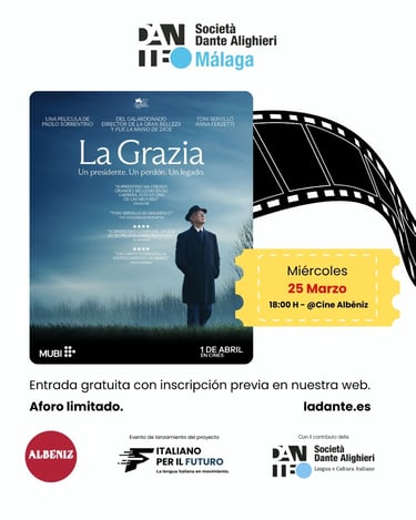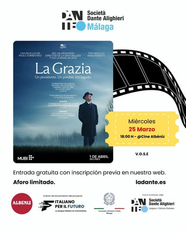 La Società Dante Alighieri Málaga presenta una proyección especial en exclusiva de La Grazia, la nueva película del director ganador del Oscar Paolo Sorrentino (La grande bellezza, Fue la mano de Dios).